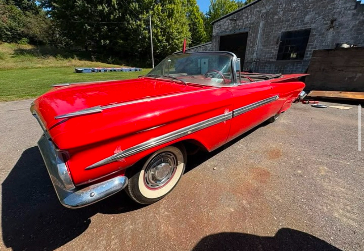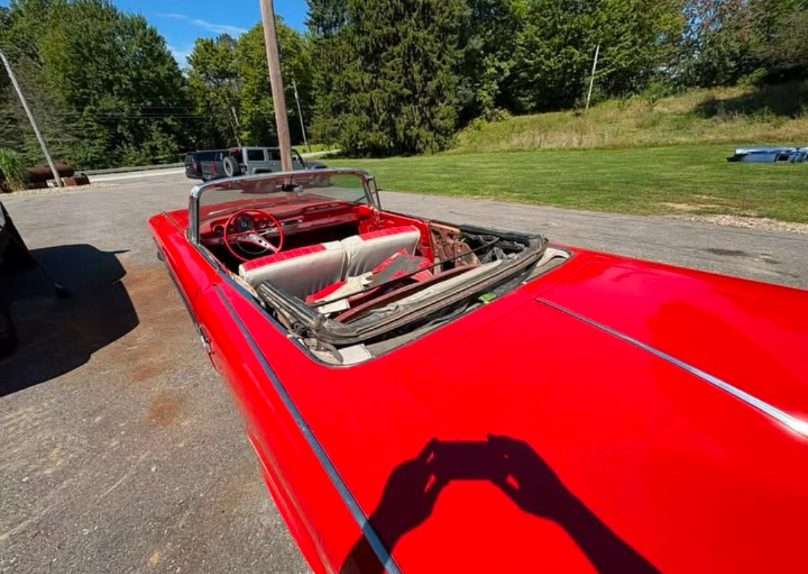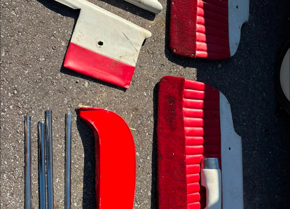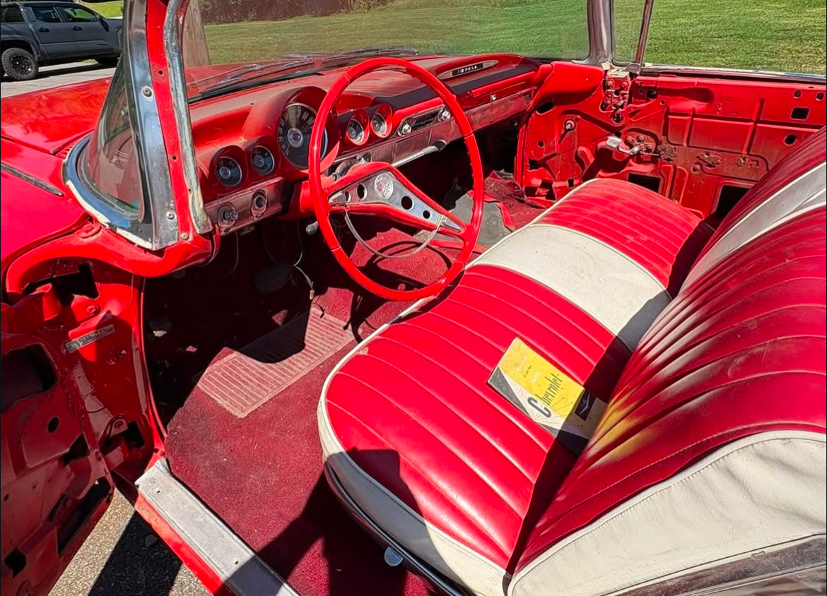Original color was white with red interior. All tags intact. Clean title. The only thing that I do not have for this car is the interior trim which was probably tossed a long time ago when the interior was redone. The upper back seat was not correct for this car when I bought it so I sourced one. The upper rear seat will need some springs replaced. Windows are all intact. You can pm me for more pics and details.